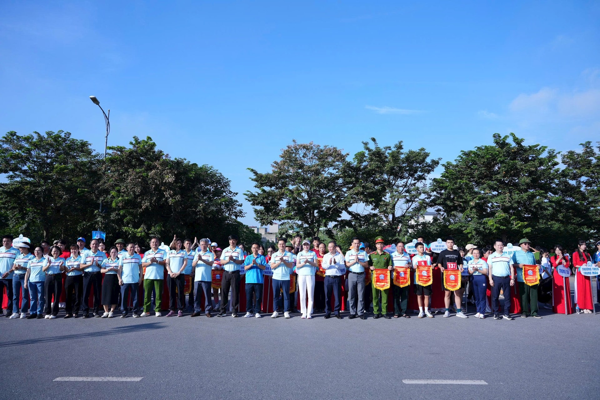 Các lãnh đạo thành phố Hà Nội và xã Phù Đổng tham gia chạy hưởng ứng. Ảnh Ngân Hà