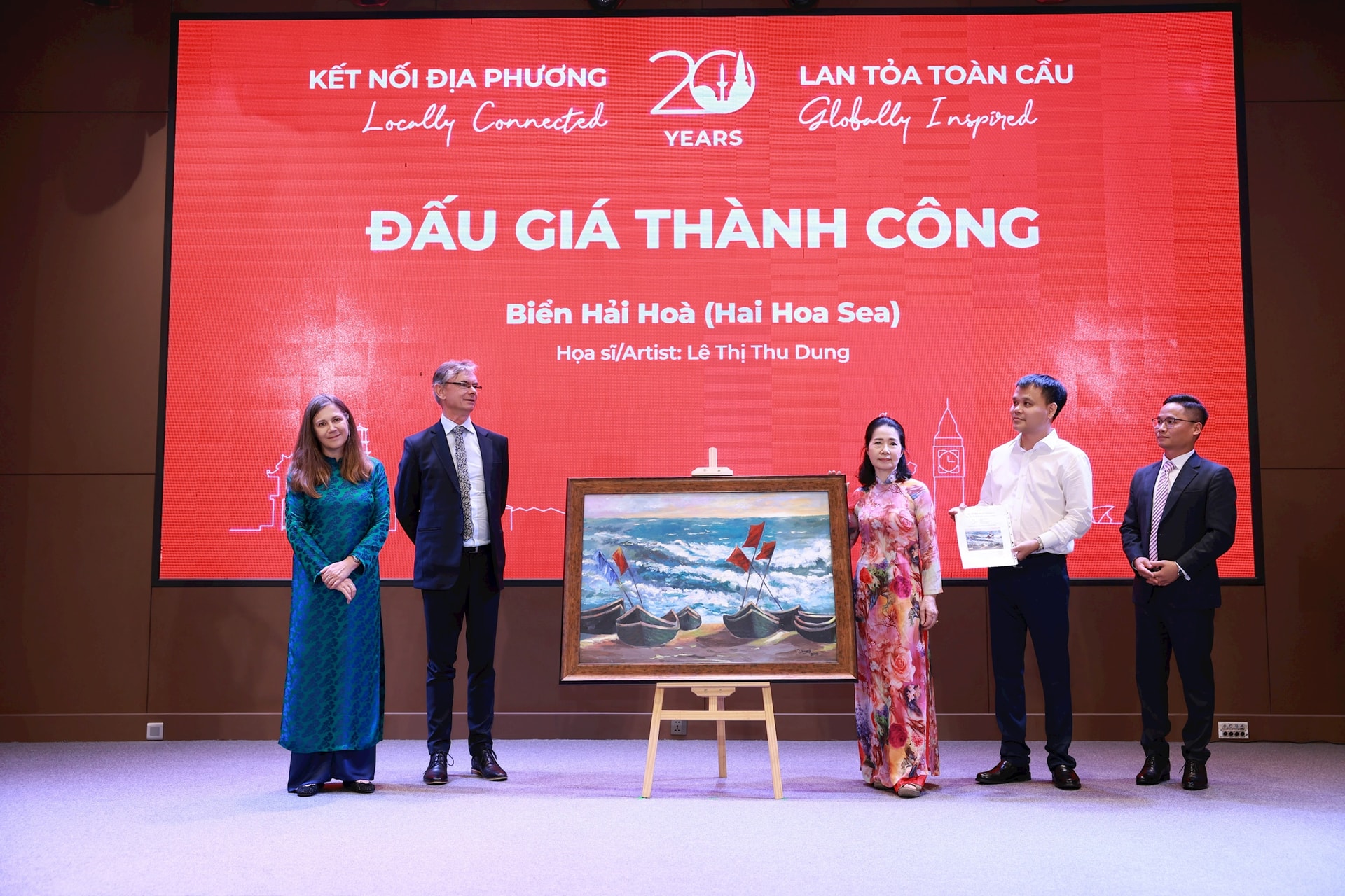 Đấu giá tranh hỗ trợ làm cầu treo dân sinh tại thôn Minh Sơn, xã Thông Nguyên, tỉnh Tuyên Quang. Ảnh: M.H